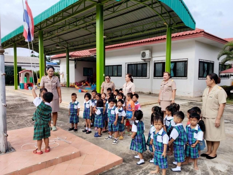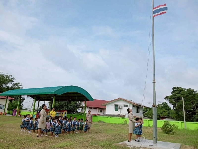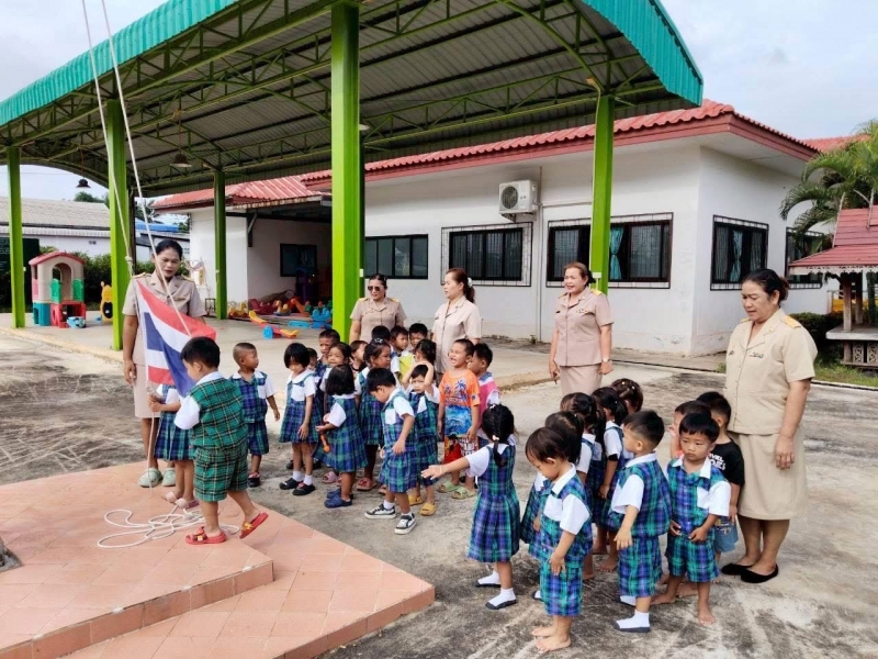 ข้าราชการ พนักงาน นักเรียนศูนย์พัฒนาเด็กเล็กในสังกัดอบต.ละหาน เข้าร่วมกิจกรรมเคารพธงชาติและร้องเพลงชาติไทยเนื่องในวันพระราชทานธงชาติไทย