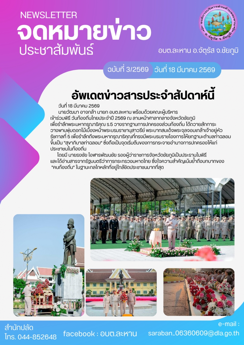 จดหมายข่าวประจำเดือน มีนาคม 2569