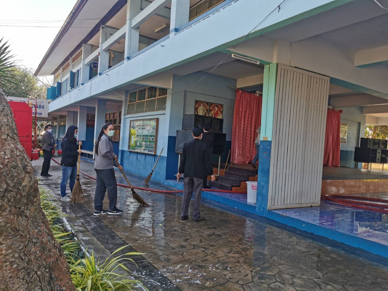องค์การบริหารส่วนตำบลละหาน ได้ดำเนินการล้างทำความสะอาดโรงเรียนละหานเจริญวิทยา
