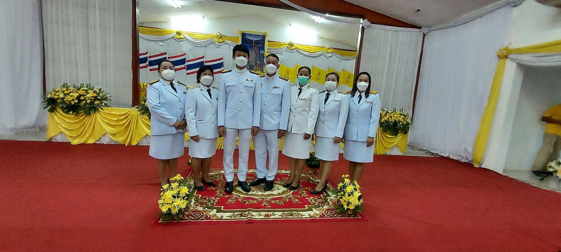 ข้าราชการเจ้าหน้าที่ ประกอบพิธีถวายเครื่องราชสักการะและวางพานพุ่ม และพิธีจุดเทียนถวายพระพรชัยมงคล