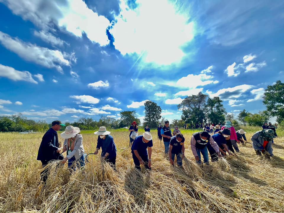 วันที่ 9 ธันวาคม 2565 องค์การบริหารส่วนตำบลละหาน โดยนายธัชทร ประภากรแก้วรัตน์ นายกองค์การบริหารส่วนตำบลละหาน มอบหมายให้ นายนคร นิยุตรานนท์ รองนายกองค์การบริหารส่วนตำบลละหาน ร่วมกับสมาชิก อบต.ละหาน กำนัน ผู้ใหญ่บ้าน ภาคีเครือข่าย สำนักงานเกษตรอำเภอจัตุรัส ครู นักเรียน และเกษตรกรตำบลละหานดำเนินโครงการลงแขกเกี่ยวข้าว อนุรักษ์วิถีชีวิตและภูมิปัญญาท้องถิ่น เพื่อพ้ฒนาการเกษตรอย่างยั่งยืน ณ ศูนย์เรียนรู้เกษตรทฤษฎีใหม่ (นาพ่ออ้ม ทองศรี) บ้านหนองสมบูรณ์ หมู่ที่ 10 ตำบลละหาน อำเภอจัตุรัส จังหวัดชัยภูมิ