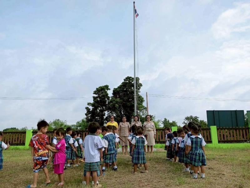 ข้าราชการ พนักงาน นักเรียนศูนย์พัฒนาเด็กเล็กในสังกัดอบต.ละหาน เข้าร่วมกิจกรรมเคารพธงชาติและร้องเพลงชาติไทยเนื่องในวันพระราชทานธงชาติไทย